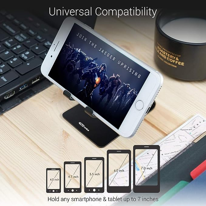 Portronics MODESK Universal Mobile Holder Stand with Metal Body, Anti Skid Design, Light Weight for All Smartphones, Tablets, Kindle, iPad