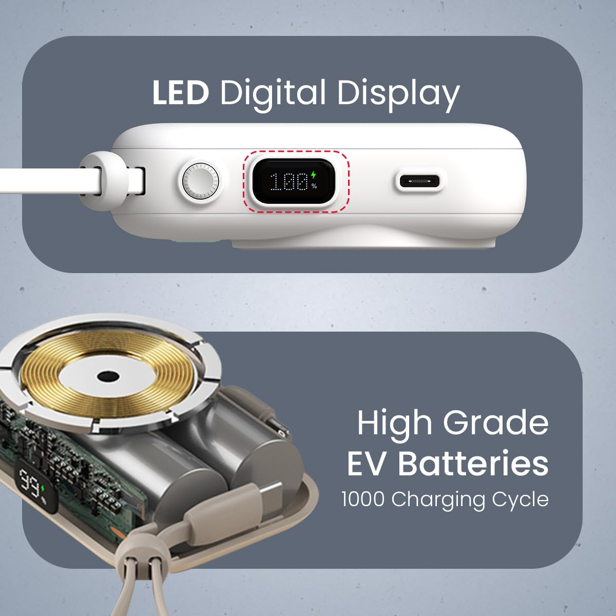 Portronics Power Shutter 15W Wireless Magnetic Power Bank, 22.5W PD, Type-C & 8-Pin Cable, LED Display