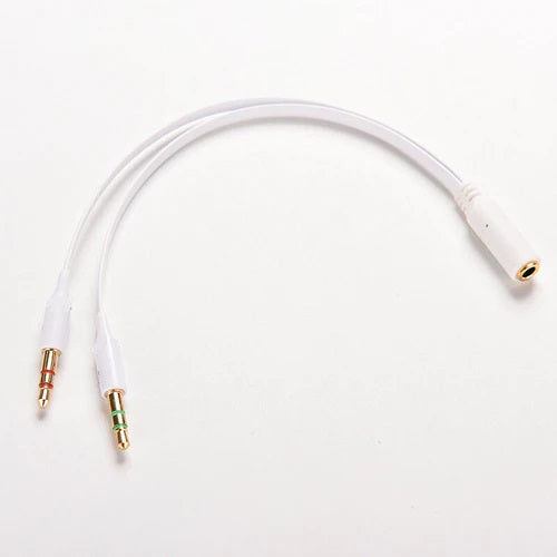 Audio Spliter Cable 3.5 mm for Computer 2 Male to 1 Female 3.5mm Headphone Mic Audio (White)