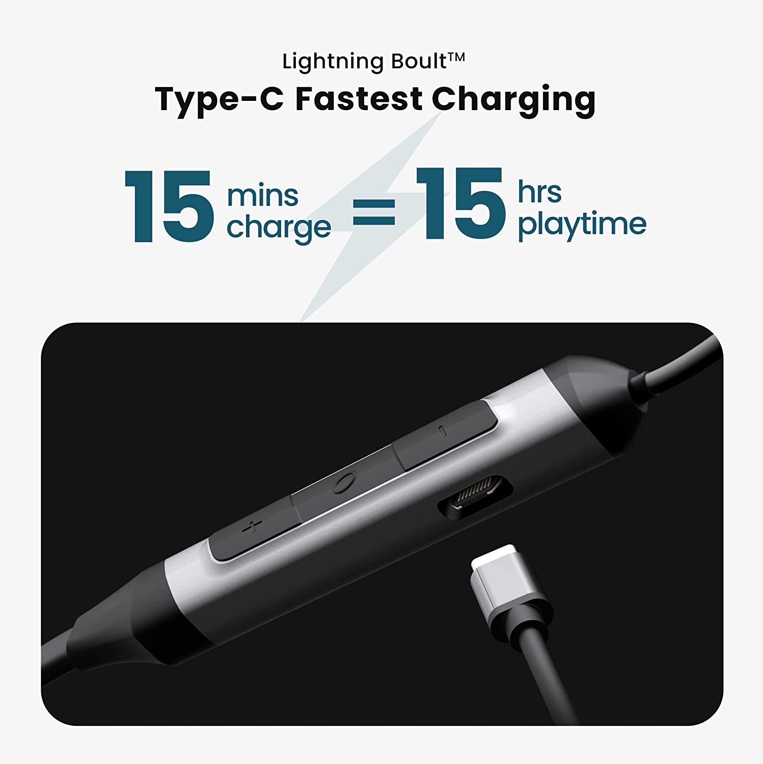 - Lightning Boult Type-C super-fast charging delivers 15Hrs of Playtime with just 15Mins of Charge