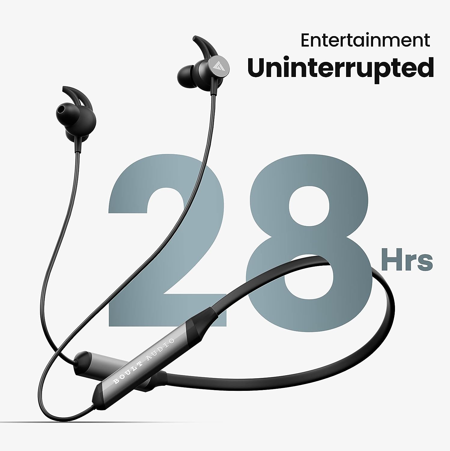 - Let your entertainment flow non-stop with a total playtime of 28Hrs in Boult's XCharge Neckband