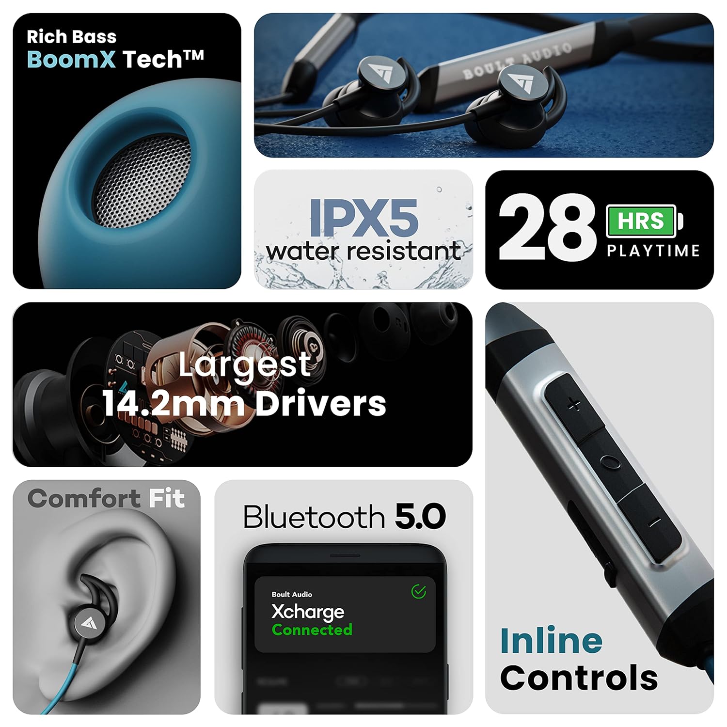 - The power-packed 14.2mm driver delivers an exhilarating audio experience that will impress you with rich sound and deep bass with Boult's XCharge Neckband