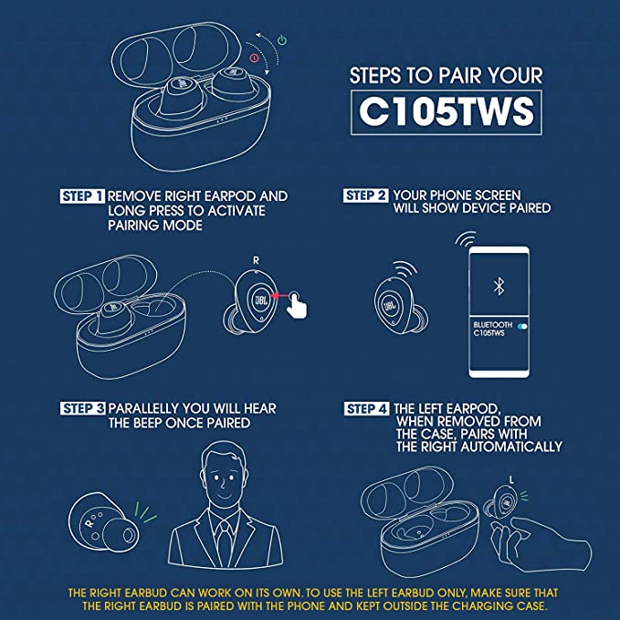 Pure Bass. Zero Cables.Immerse yourself in your world. Whether youre tuned into music or taking calls, youve got no cords to hold you back. Dual Connect lets you use either earbud, or both, anytime you want, in stereo or mono mode. Your favorite artists sound incredible with JBL Pure Bass. With up to 21 hours of battery life and a comfortable fit, you can keep the fun going all day and night. And if you miss the world, you can take and end calls or talk to your voice assistant using just a finger. Simple as that!