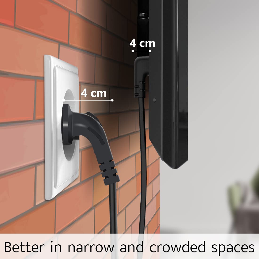 SPACE UTILIZATION AND HUMANIZED DESIGN - The 90 degree angled slot and L-shaped figure 8 was speciallly designed for wall-mounting slim type TV in tight space. With this power cable, you can move your TV as close as possible to the wall meanwhile greatly protect your cord from bending. Powerful, beautiful and generous, it is an excellent choice for your bold innovation.