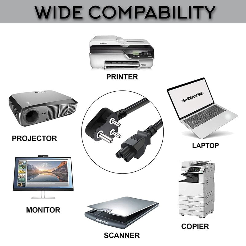 Laptop Power Cable Cord is a high-quality, heavy-duty 1.2-meter cable with a 3-pin adapter, designed to provide a secure and stable power connection for your laptop. Its black color adds a professional and stylish look to your setup.