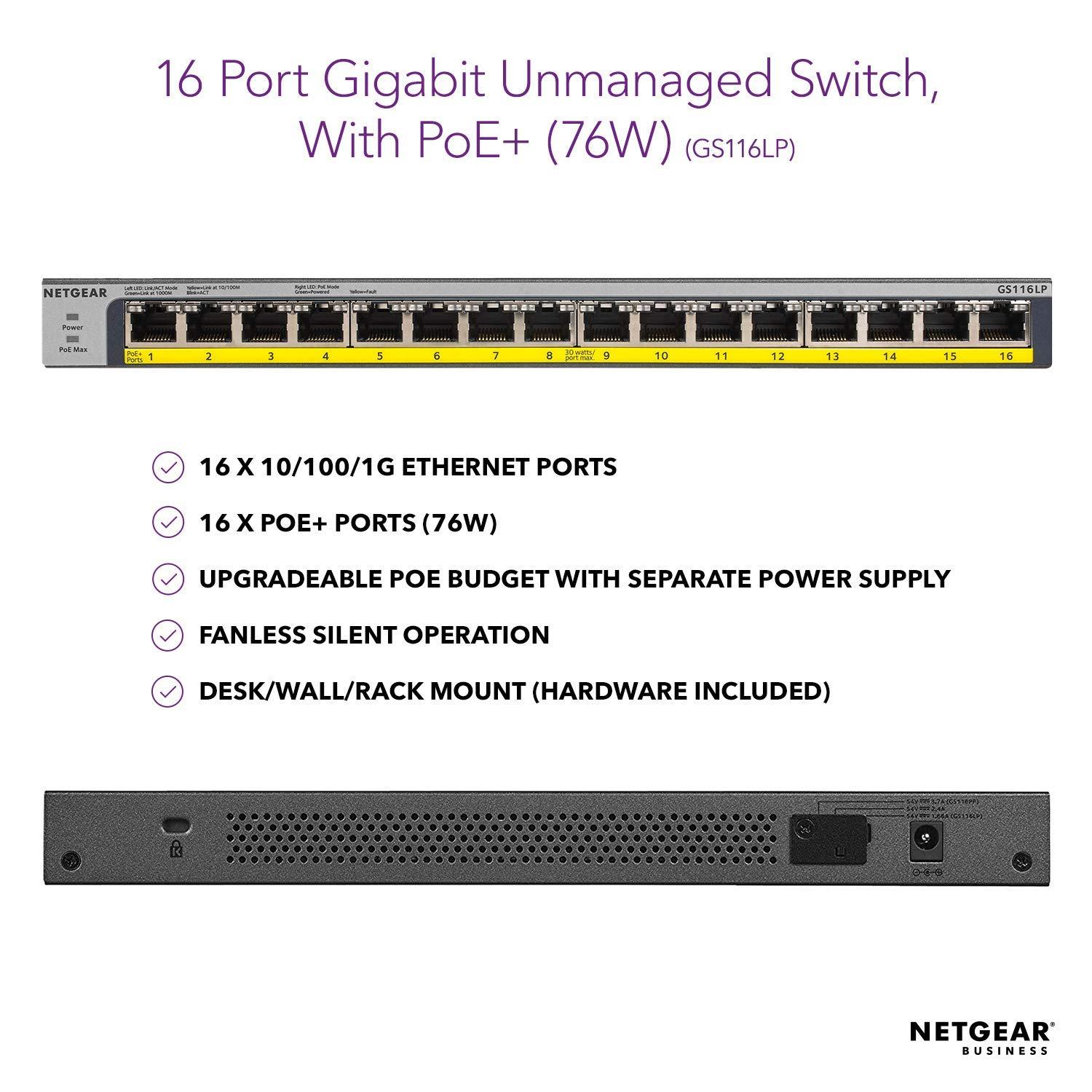 - POWER-OVER-ETHERNET: 16 PoE+ ports with 76W total power budget, and includes NETGEAR FlexPoE making it expandable to 760W (w/separately purchased power supply module)