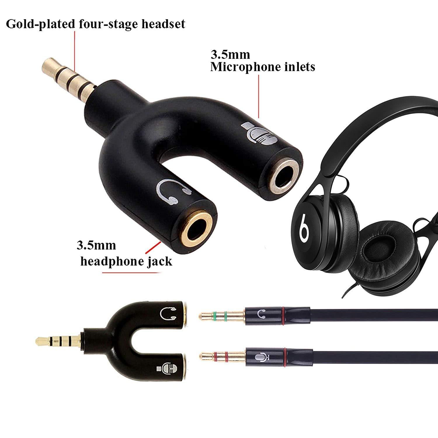 Male to 2 Female Splitter Converts a single 3.5mm combo jack into separate headphone and microphone ports.