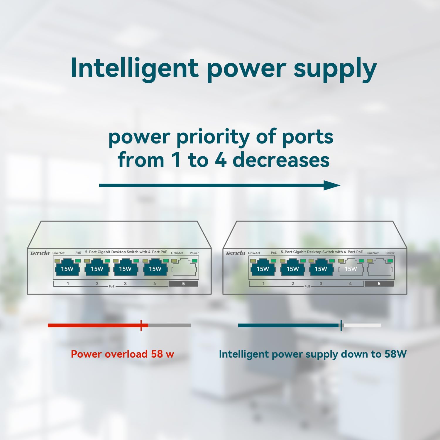 It Provides a Maximum Power Supply of 30W to Each Port & 58W to the Whole Device.
